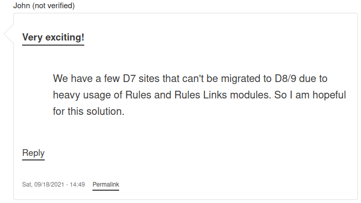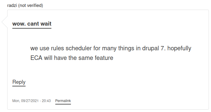 ECA got started to provide a “Rules” equivalent for Drupal 9 and beyond. While getting close to deliver on that objective, ECA solves additional challenges and helps to trim-down the overhead of each Drupal application.