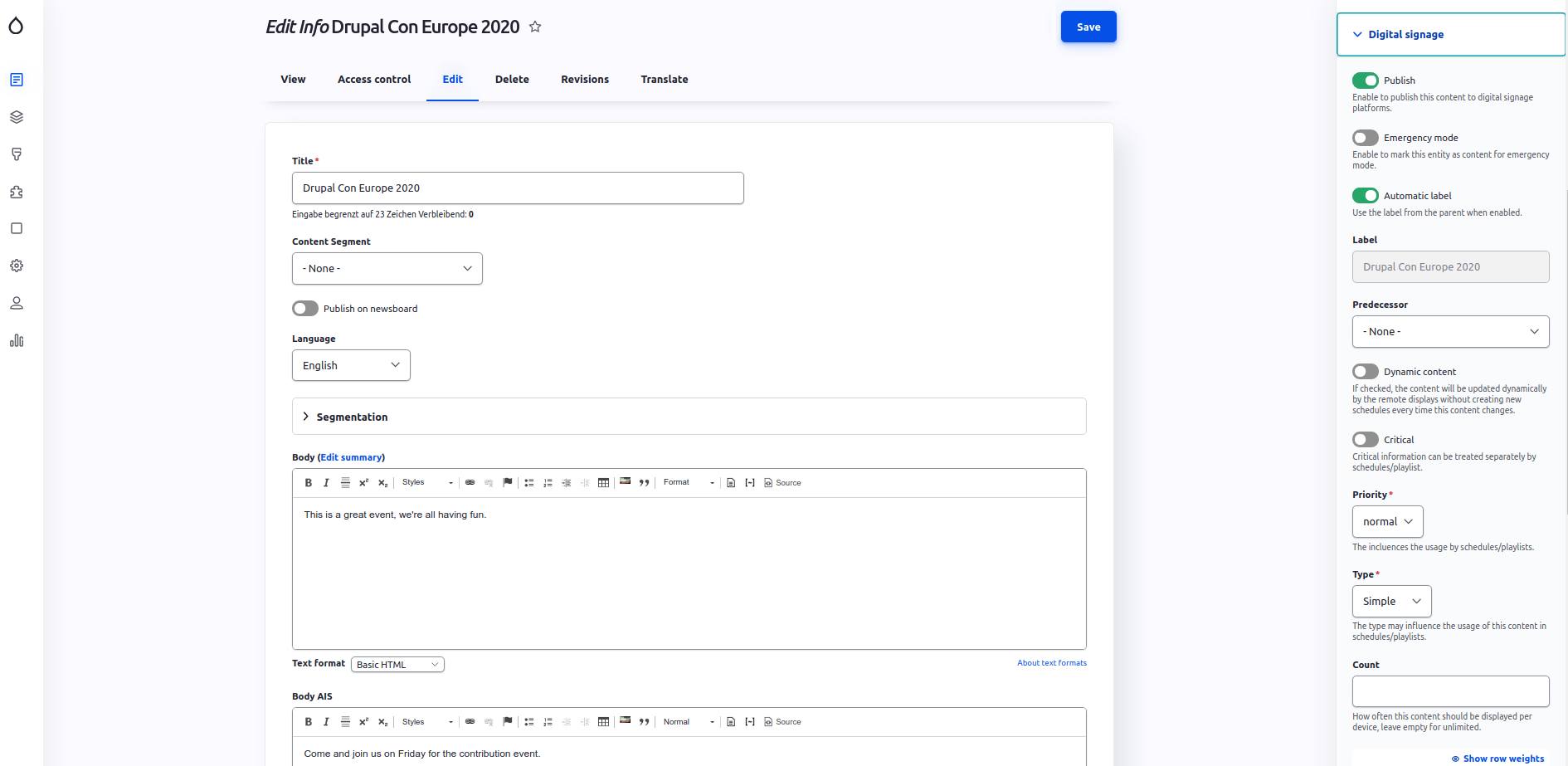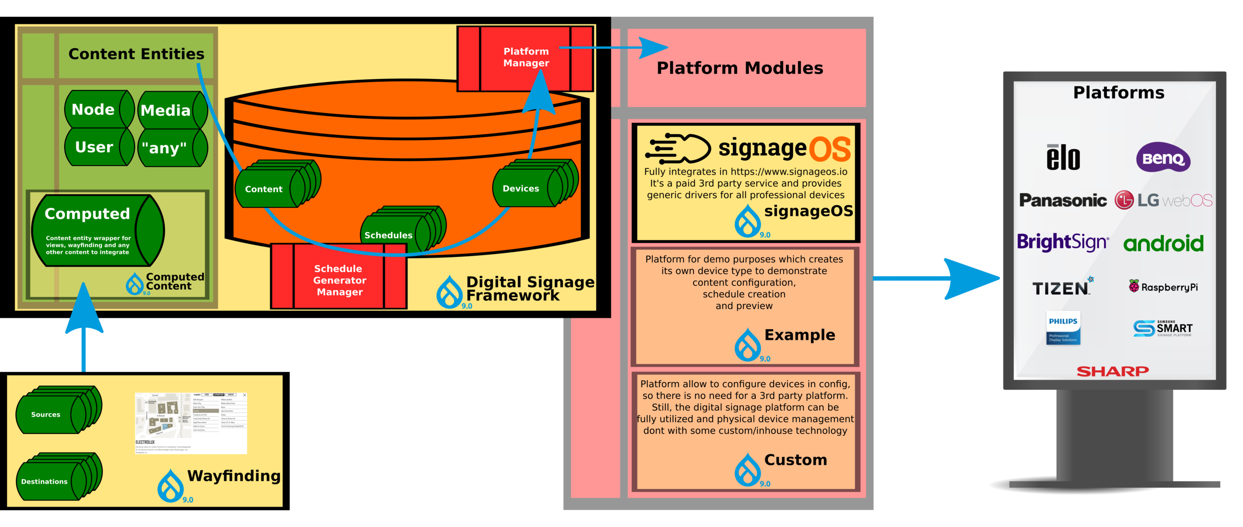 bitegra Solutions entwickelt und pflegt eine Reihe von Modulen, um modernste Digital Signage Funktionalität in Drupal 8 und Drupal 9 bereitzustellen.
